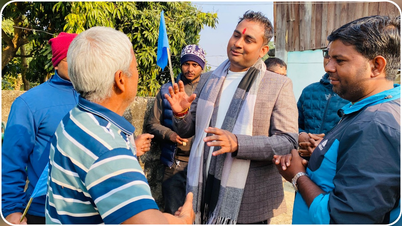 उम्मेदवार सुशील कुमार कानुले स्थानीयवासीसँग प्रत्यक्ष संवाद गर्दै क्षेत्रका प्राथमिक समस्या समाधान गर्ने प्रतिबद्धता व्यक्त गरे।