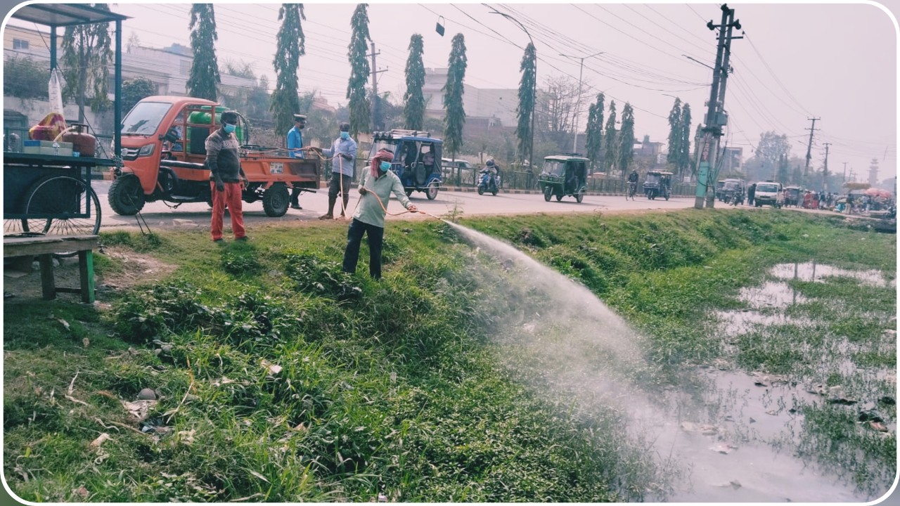 महानगर प्रमुखको निर्देशनमा बिहान १० बजेदेखि नै पम्पमा विषादीयुक्त घोल तयार गरी नाला तथा पानी जम्ने स्थानहरूमा छर्किने कार्य भइरहेको सरसफाइ व्यवस्थापन शाखाका अधिकृत सरफुदिन मियाले जानकारी दिनुभयो।