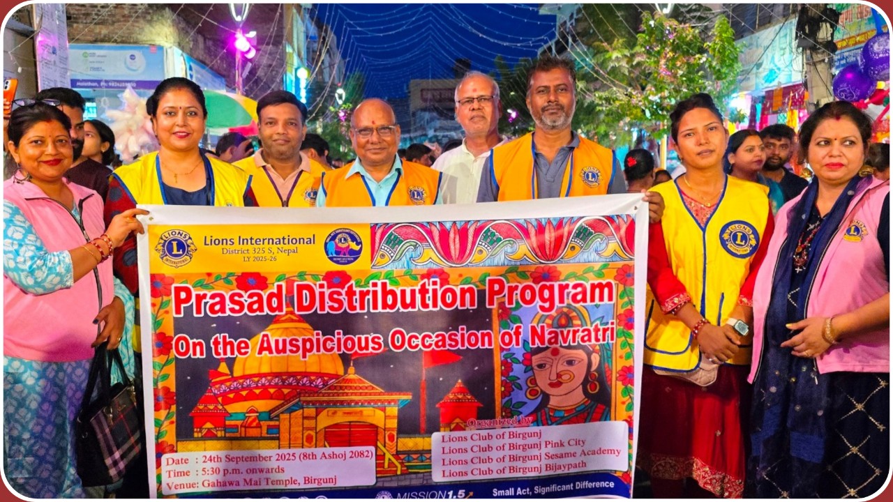 वीरगञ्ज – नवरात्री पर्वको शुभ अवसरमा लायन्स क्लब अफ वीरगञ्ज पिंक सिटी, लायन्स क्लब अफ वीरगञ्ज, लायन्स क्लब अफ वीरगञ्ज सेसमी एकेडेमी र लायन्स क्लब अफ वीरगञ्ज विजयपथको संयुक्त आयोजनामा आज गहवामाई मन्दिर परिसरमा विशेष प्रसाद वितरण कार्यक्रम सम्पन्न गरिएको छ ।